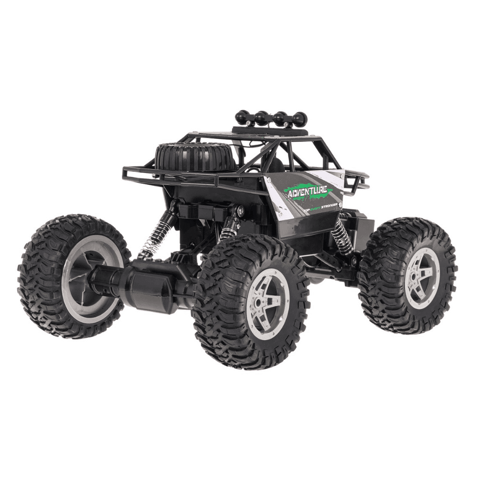 Metalowy crawler Rock Shake w skali 1:14, zdalnie sterowany z napędem na cztery koła to propozycja dla dzieci od 6-go roku życia. Duże gumowe, antypoślizgowe opony, sprężynowe zawieszenie sprawia, ze pojazd bez problemu pokona każdą powierzchnię. Crawler wykonany jest z wysokiej jakości materiałów, ma metalową karoserię, co zapewnia mu wytrzymałość. Silnik zastosowany w pojeździe pozwala na rozwinięcie dużej prędkości. Zabawka zasilana jest akumulatorem typu 3,7 V 1200 mAh (w zestawie), pilot bateriami typu 2 x AA 1,5 V (brak w zestawie). Funkcje pojazdu: