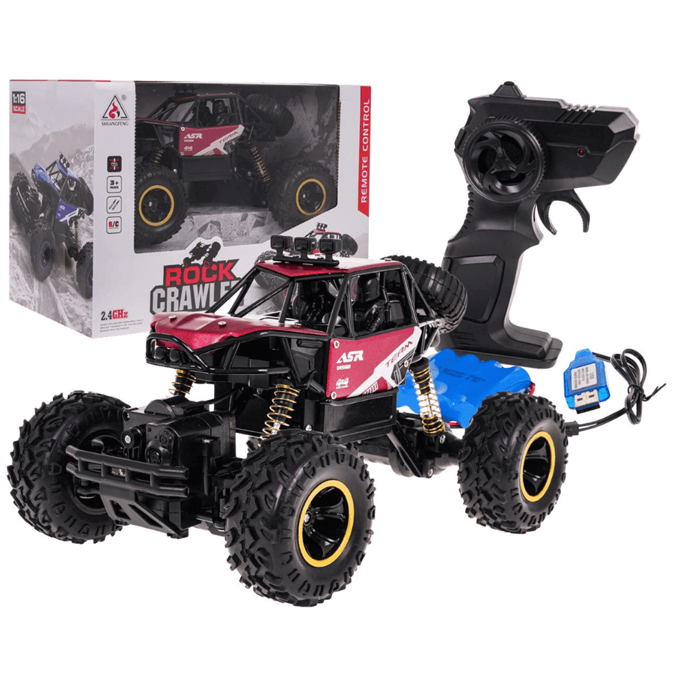 Metalowy crawler Monster Rock w skali 1:16, zdalnie sterowany z napędem na cztery koła to propozycja dla dzieci od 8-go roku życia. Duże gumowe, antypoślizgowe opony, sprężynowe zawieszenie sprawia, ze pojazd bez problemu pokona każdą powierzchnię. Crawler wykonany jest z wysokiej jakości materiałów, ma metalową karoserię, co zapewnia mu wytrzymałość. Zabawka zasilana jest akumulatorem typu 4,8 V (w zestawie), pilot bateriami typu 2 x AA 1,5 V (brak w zestawie). Funkcje pojazdu: