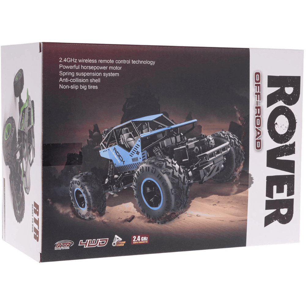 Duży, metalowy crawler Rover w skali 1:16, zdalnie sterowany z napędem na cztery koła, to propozycja dla dzieci od 6-go roku życia. Duże gumowe, antypoślizgowe opony, sprężynowe zawieszenie sprawia, ze pojazd bez problemu pokona każdą powierzchnię. Crawler wykonany jest z wysokiej jakości materiałów, ma metalową karoserię, co zapewnia mu wytrzymałość. Silnik zastosowany w pojeździe pozwala na rozwinięcie dużej prędkości. Zabawka zasilana jest bateriami typu 3,7V 1200mAh (w zestawie), pilot bateriami typu 2 x AA 1,5 V (brak w zestawie).