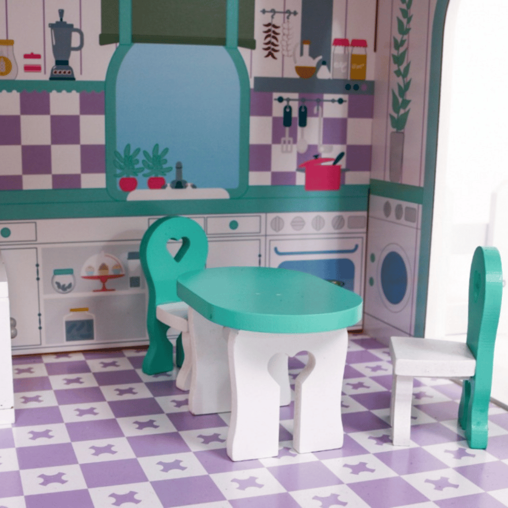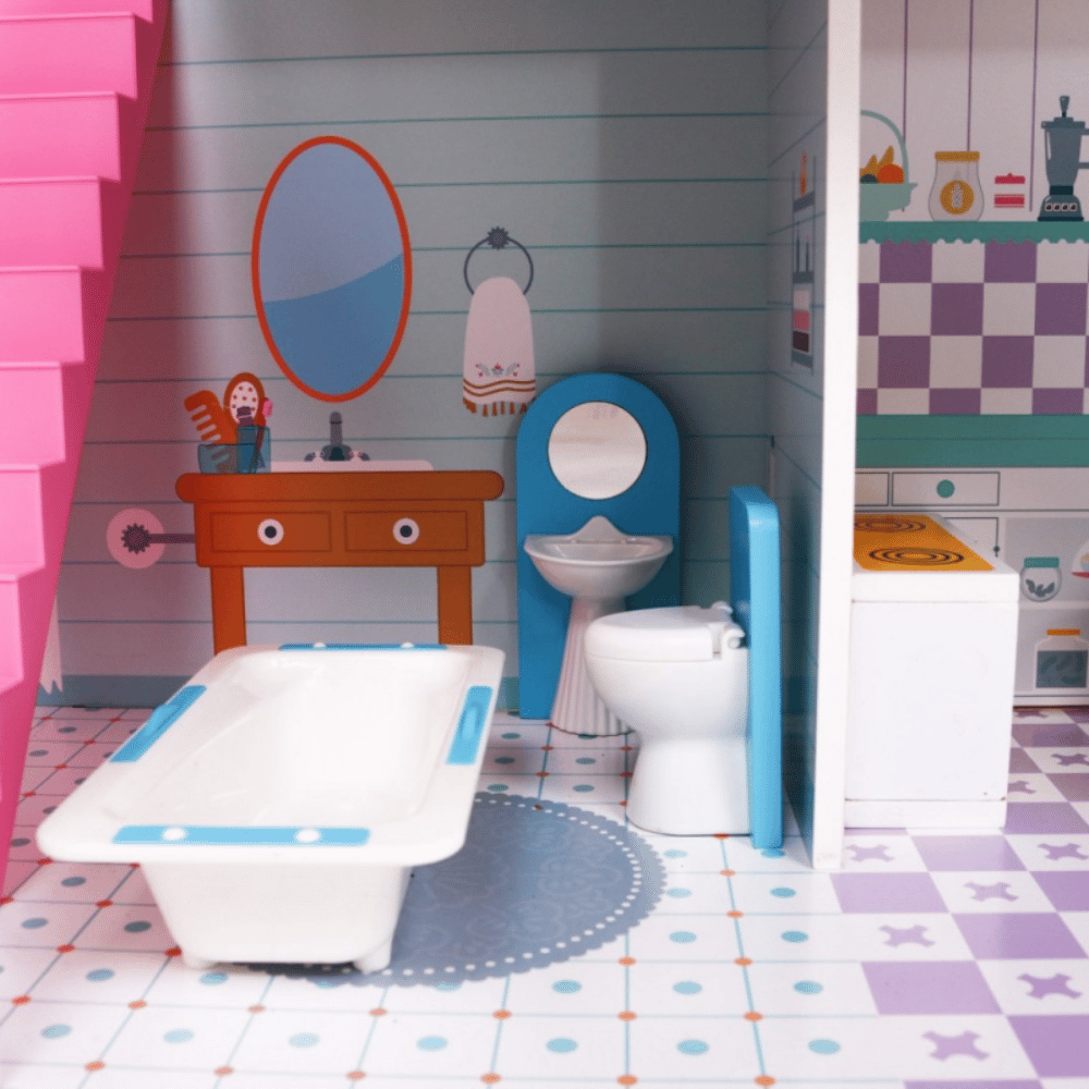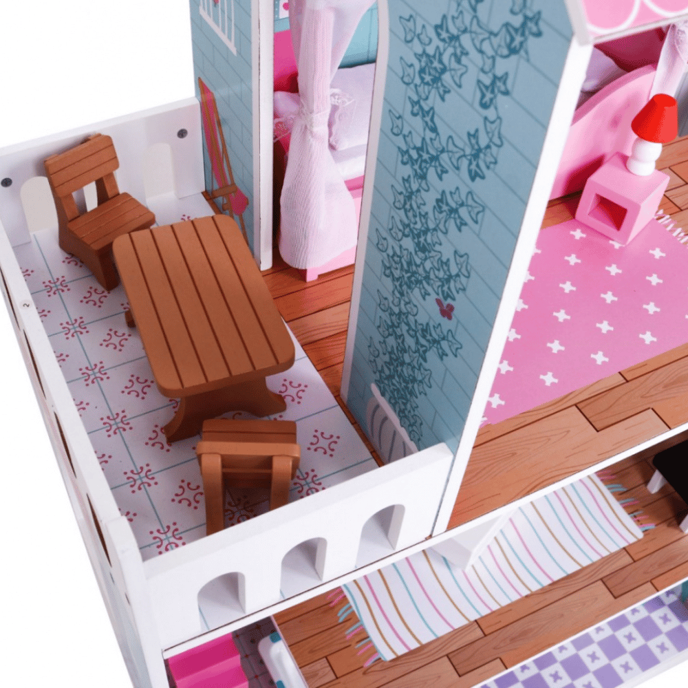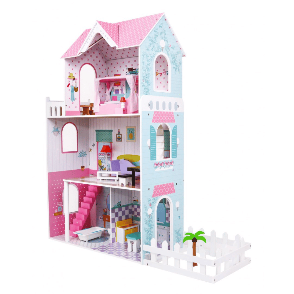 Mega duży drewniany domek dla lalek z wyposażeniem i ogródkiem, to propozycja dla dzieci już od 3-go roku życia. Znakomicie wykonany, bogato wyposażona, będzie spełnieniem marzeń Twojej pociechy. Proponowany domek wykonany została z wysokiej jakości drewna, solidnego i trwałego materiału, jest stabilny i odporny na uszkodzenia zewnętrzne. Drewniany domek oraz jego drewniane elementy wyposażenia pomalowane zostały bezpiecznymi, nietoksycznymi farbami. Delikatne pastelowe kolory domku oraz wyposażenia to niebywały atut tego zestawu. Domek posłuży Twojej pociesze przez długie lata. Zabawa w domek uczy kreatywności, rozwija wyobraźnię, pozytywnie wpływa na rozwój Twojej pociechy a przy tym dostarcza wiele pozytywnych emocji i wrażeń.