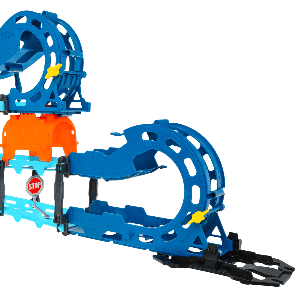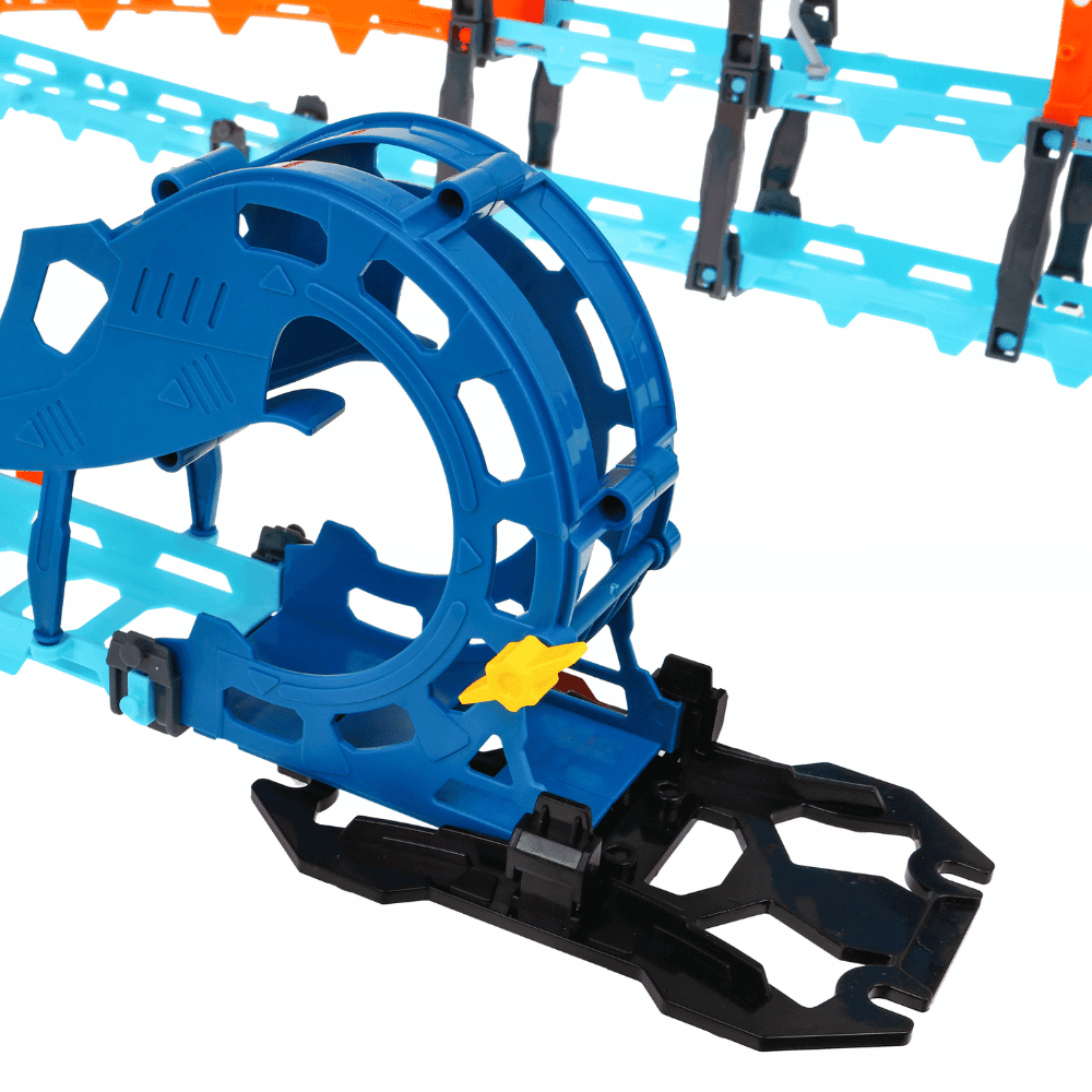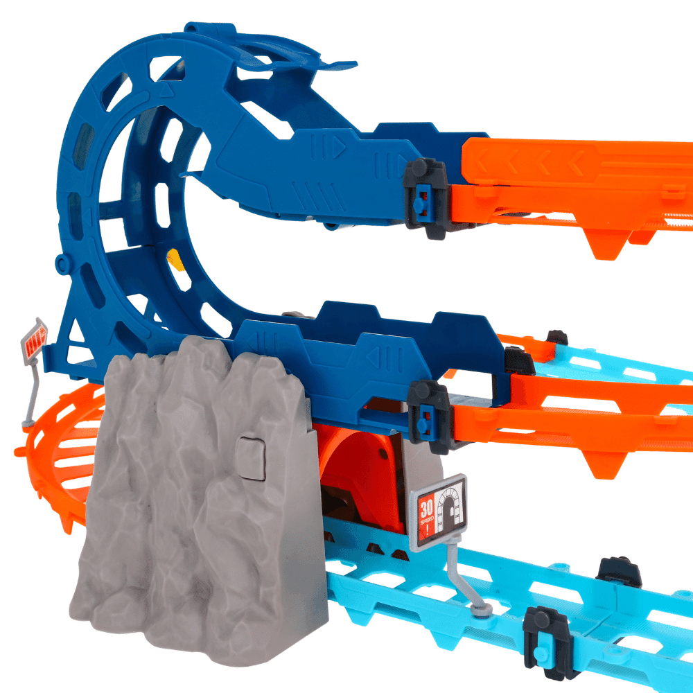 Ekstremalny wielopoziomowy tor wyścigowy z funkcją dźwięku i światła to propozycja dla dzieci powyżej trzeciego roku życia. Do zestawu dołączono jeden dwustronny pojazd zasilany akumulatorem typu 3,7V (zestaw zawiera). Samochód mknący po torze wykonuje obrót o 360 stopni, posiada światełka z przodu i gumowe tylne opony. Ładowany jest przez port USB. Tor posiada podświetlany tunel z odgłosami jazdy samochodu rajdowego – zasilanie bateriami typu 3 x AA 1,5V (brak w zestawie). | |