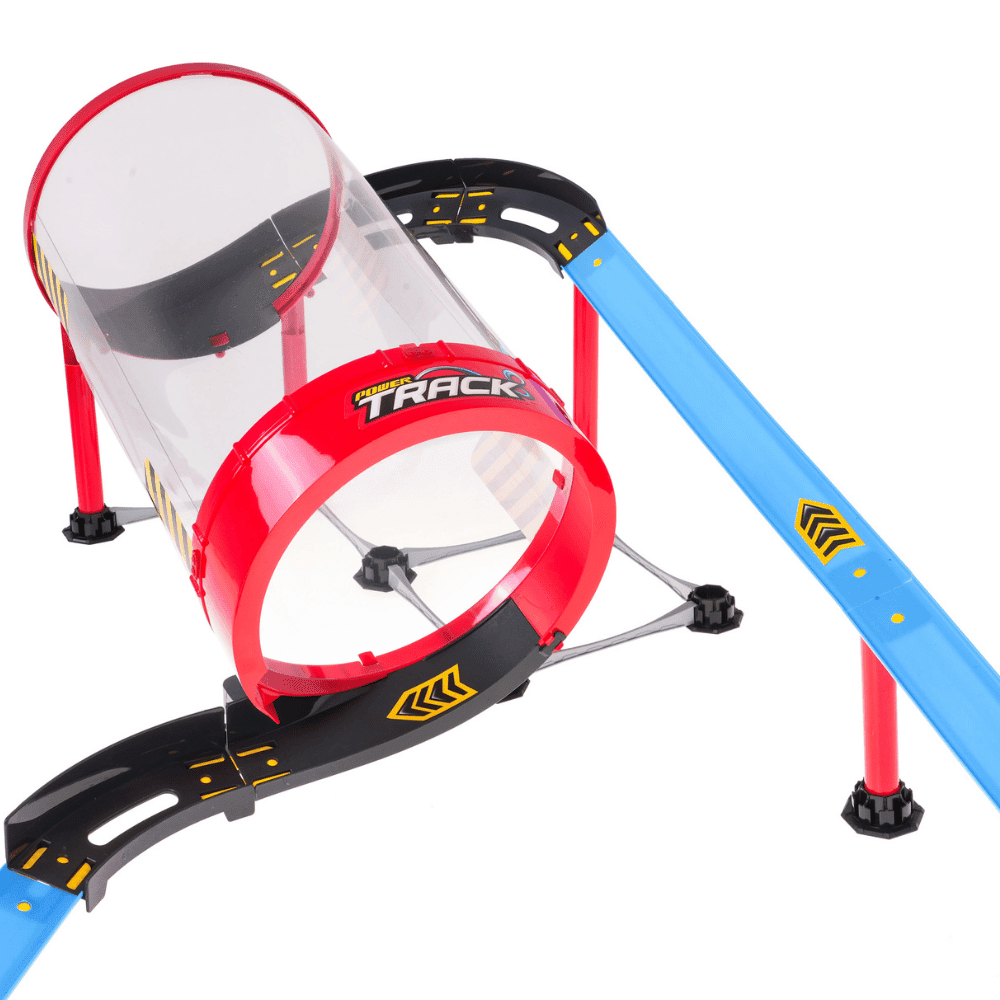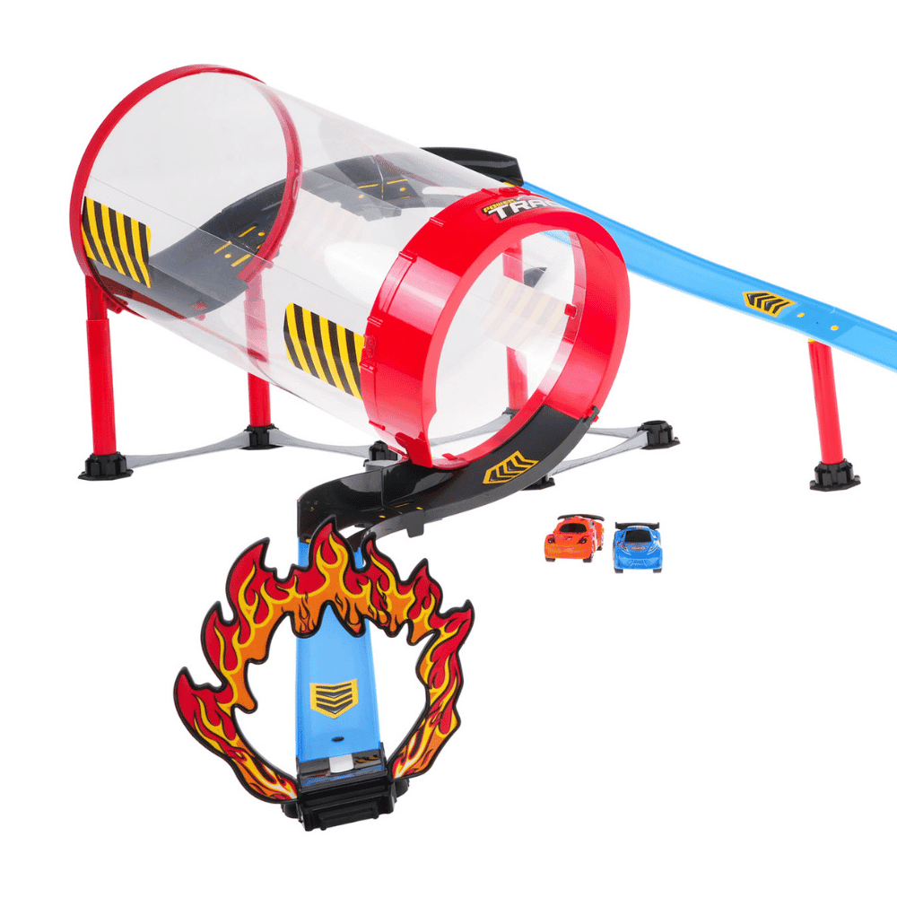 Fantastyczny tor wyścigowy z tubą i dwoma autkami w zestawie to propozycja dla dzieci od 3-go roku życia. Zestaw składa się z 57 elementów toru do samodzielnego montażu. Autka dołączone do zestawu nie wymagają użycia baterii, posiadają napęd pull back, wystarczy je delikatnie naciągnąć do tyłu, żeby pojechały z dużą prędkością po torze, pokonały szeroką beczkę i wyskoczyły przez obręcz na końcu toru. Tor można łączyć z innymi zestawami z serii.