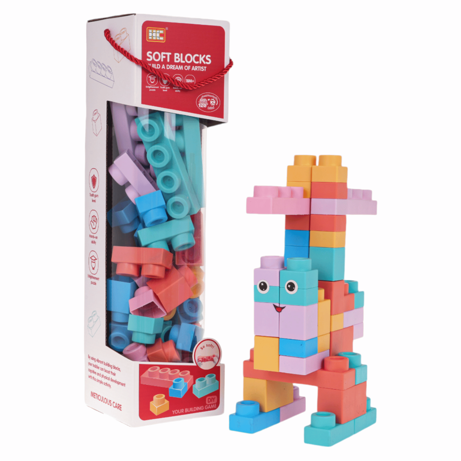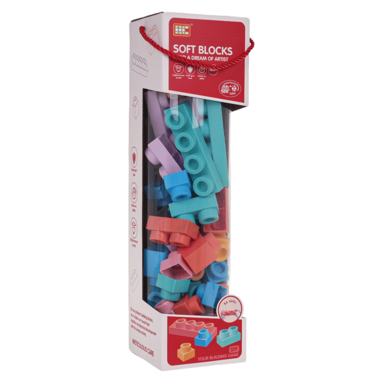 | Zestaw kolorowych miękkich klocków dla dzieci od 3-go roku życia. Zestaw wykonano z bezpiecznego dla dzieci i środowiska materiału PVC. Klocki są lekkie i nie posiadają ostrych zakończeń. Bardzo łatwo je utrzymać w czystości, po wyparzeniu, nie tracą kolorów. Klocuszki możemy dowolnie wyginać, a po wygięciu wracają do swojego poprzedniego kształtu. Funkcje zestawu: – przeznaczone dla dzieci powyżej 3-go roku życia, – wykonany w żywych kolorach przyciągających wzrok dziecka i zachęcających do zabawy, – łatwe w utrzymaniu czystości, po wyparzaniu nie tracą koloru, – nie posiadają ostrych zakończeń, – można je dowolnie wyginać. |