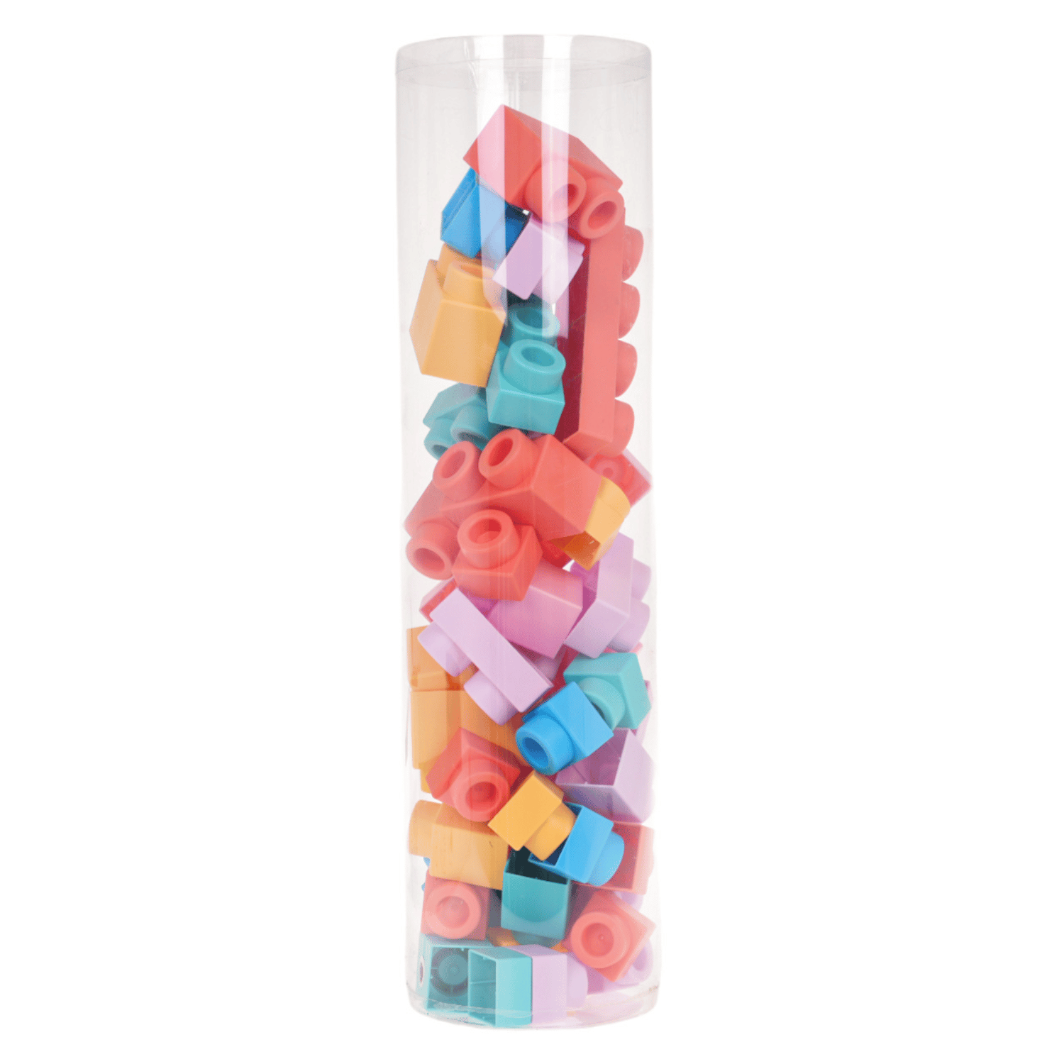 Wymiary | – klocuszek pojedynczy mniejszy ok. 3 cm x 3 cm x 3 cm, – klocuszek pojedynczy większy ok. 5 cm x 3 cm x 3 cm, – klocuszek podwójny mniejszy ok. 6,5 cm x 3 cm x 3 cm, – klocuszek podwójny większy ok. 6,5 cm x 5 cm x 3 cm, – klocuszek poczwórny ok. 12,5 cm x 3 cm x 3 cm, – szablon z naklejkami ok. 18,5 cm x 8 cm, – tuba na klocki ok. 45 cm x 12 cm – opakowanie ok. 46 cm x 12,5 cm x 12,5 cm. |